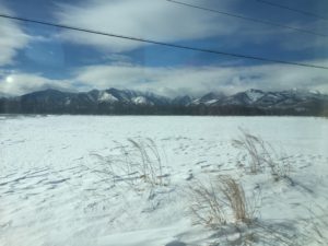 スーパーおおぞら4号の車窓から雪の平原に鹿が時々見れるとの事でしたので一生懸命探しておりましたが残念ながら見ることは出来ませんでした。車窓から北海道の広い冬の大地の風景を楽しむことが出来ます。