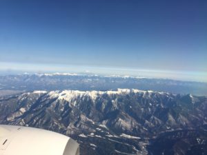 帰りのJAL飛行機から長野県の上空を飛んでますとの機長さんのアナウンスで、窓の下を見ますとアルプスの綺麗な山々を見ることが出来ました。写真でははっきりと解りませんがアルプスの山の奥に小さく富士山が見えました。