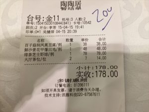特に海老のてんぷらは非常に美味でした。正式な料理の名前は勘定書きをご覧下さい。陶陶居のマイタンは178元です。日本円で約3500円です。