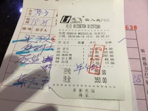 このお店のマイタンは353元でした。日本円で約7,000円です。