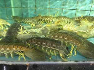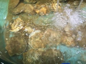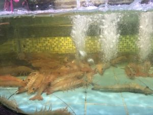 私はお店の中の水槽からシャコ、ほたて、海老をチョイスしました。 選んだ魚の料理方法を係りの方に伝えます。