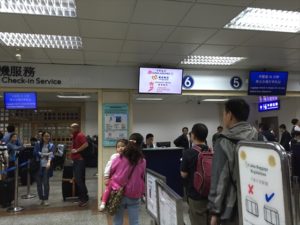 このチェックインカウンターにてスーツケースを預けチェックインできます。ここで済ます事により香港の空港ではなにもすることがなく非常に楽です。