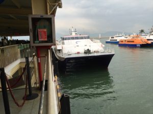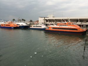上の写真が香港行きのフェリーです。下の写真は港の風景です。