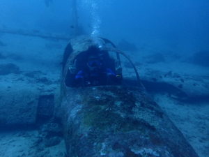 セスナのコックピッット中のスナップ。水中のパイロット!!