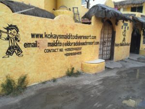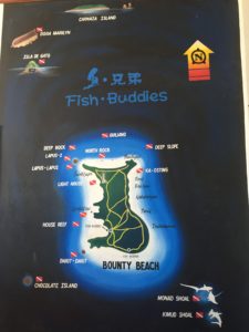 このダイビングショップ「フィッシュバデイ」はビーチの右の端の方にあります。ダイビングのお客さんは100%中国の若者です。