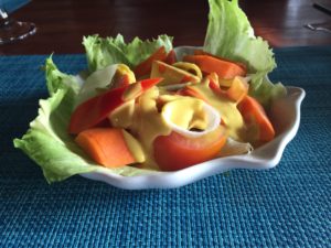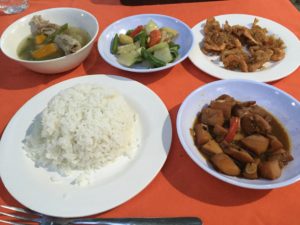 ある日の豪華な夕食です。3人でシェアーしました。一人当たり1000円。美味しかった!!