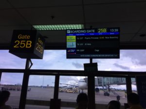 いつものセブパシフィックのボーデイングゲートの突然の変更には、英語のアナウンスが理解できない私には非常に危険です。この日も変更です。みんなの後について何度も人に聞きながら移動です。