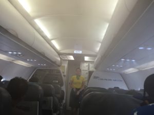 セブパシ機内の驚きのミストサービス。席に着きますと機内がミストでいっぱい!                                                                              何かあったのかと一瞬驚き!初めてに経験でした。