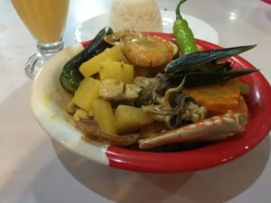 ホテルの近くのレストランのある日のシーフードカレーで、マンゴーシェイク付きで230ペソです。