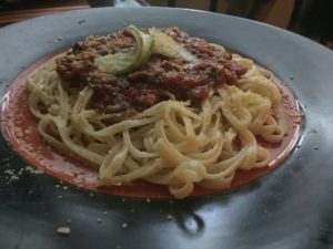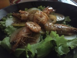 ホテルの近くのレストランのある日の夕食です。二人分で1000ペソです。