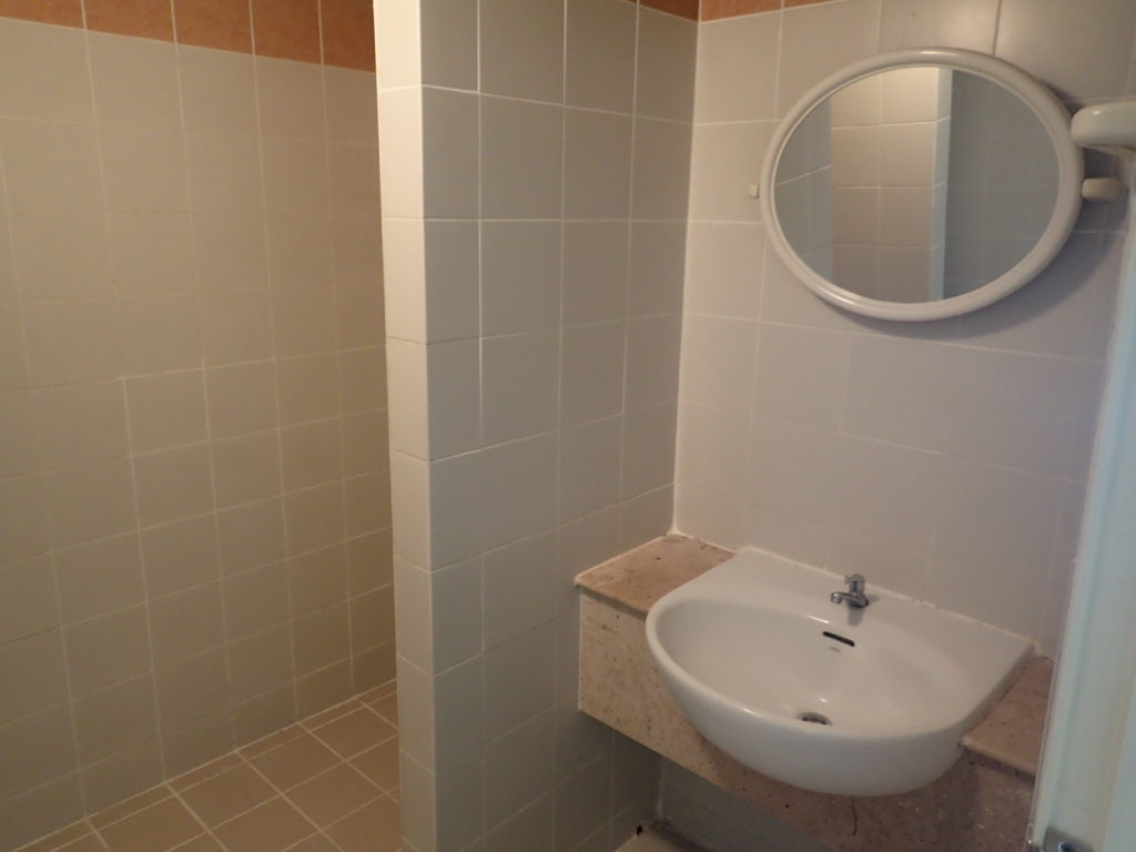 玄関を入りますと事務所があります。事務所の窓口で「Halo Please show me rent room」と言えば先方はなれたものです。下のプライス表をすぐに見せてくれます。私は5000~7000バーツ(日本円で2万円)が予算でしたので、スタジオタイプの5700バーツのところを指さして「This Please」と言いますと係りのお兄さんがエレベーターに乗って部屋に案内してくれます。「Photo OK」と尋ねますとOKと返事が返ってきまして、細かいところまでチェックできます。