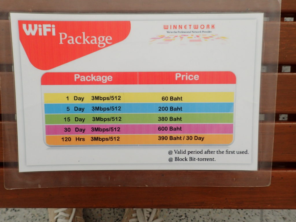 wifiは別料金で一か月600バーツ(日本円で2000円)ちょっと高いかな?