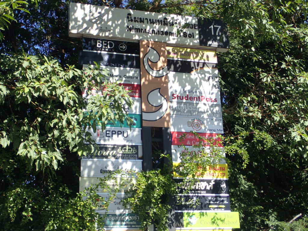 ニマンヘミン通りSoiに入る手前に大きなショッピングセンター MAYA があります。とっても大きな、きれいなショッピングセンターです。レストラン街も充実しています。日本食のお店も4軒ほどありました。ローカル食も40バーツほど(日本円で150円)で沢山の種類がありました。朝、昼、夜とすべてこの中で一か月食べても飽きることはありません。もちろん食品スーパーもありすべて生活用品はここでそろいます。
