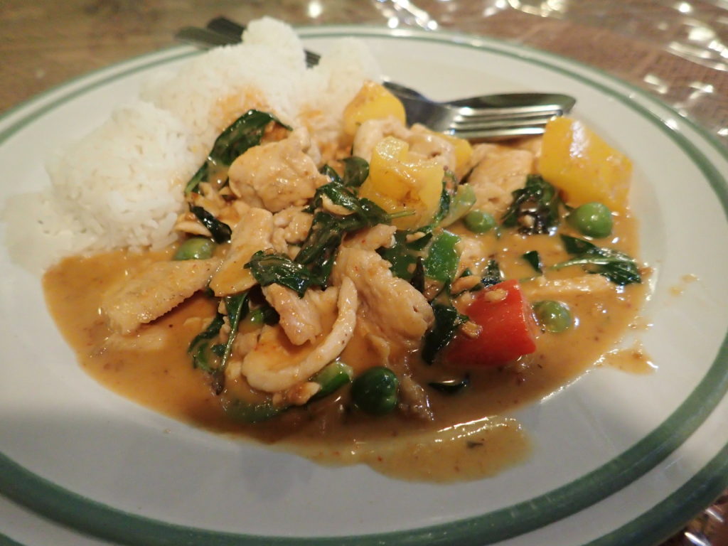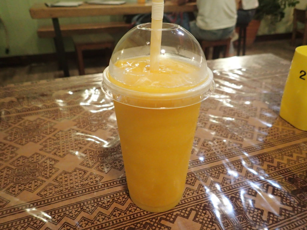 タイカレー とってもまろやかで、ここなつの味がして大好き!40バーツ そしてカレーを注文したら必ずいっしょにとっても美味しいマンゴーシェイク60バーツ 計100バーツ(日本円で330円)