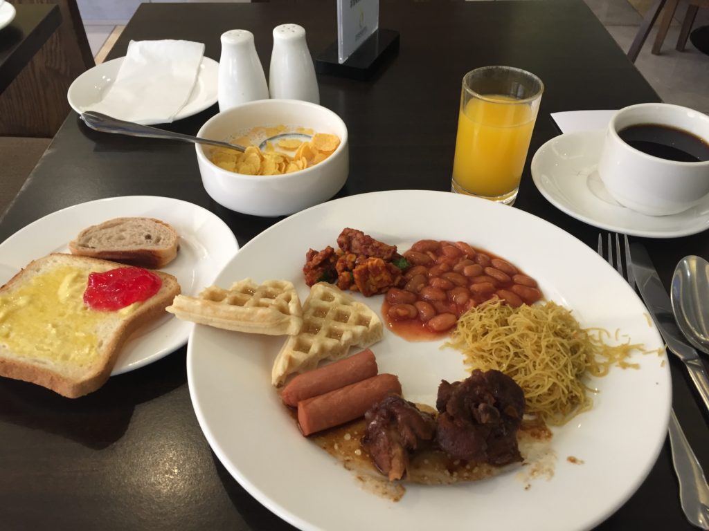 ホテルの朝食です。そこそこ取り揃えられておりました。 コタキナバルのホテルはちょっと高めです。3000円以下のホテルを探すのはちょっと難しいです。