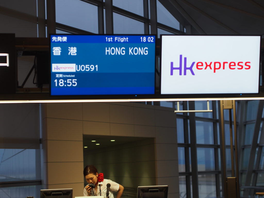 11:35 HONG KONG――16:35中部国際(セントレア) 香港エクスプレス 預入荷物20キロ 座席指定